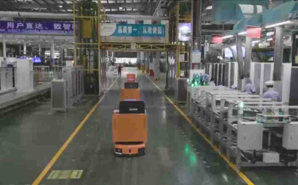 为车载冰箱物流配送打造的智能解决方案,,包含产中物流通过潜伏举升AMR搬运至线边,,产后成品物流智能仓储,,,流程包含产中物流智能齐套入库,,线边安灯叫料AMR智能配送至线边,,,成品入库、、、、出库,,,,通过无人堆高车机器人,,,智能仓储管理替代人工作业管理,,实现更高存储、、、、更高效率、、、、更具柔性化的解决方案。。。。